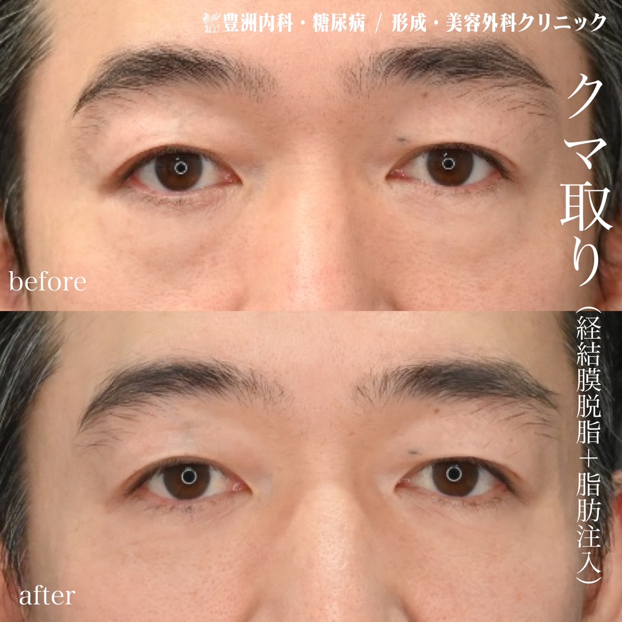 また、脂肪注入を併用することで脱脂のみの場合と違い、ボリュームロスによる目の下の小皺が目立ちにくくなります。