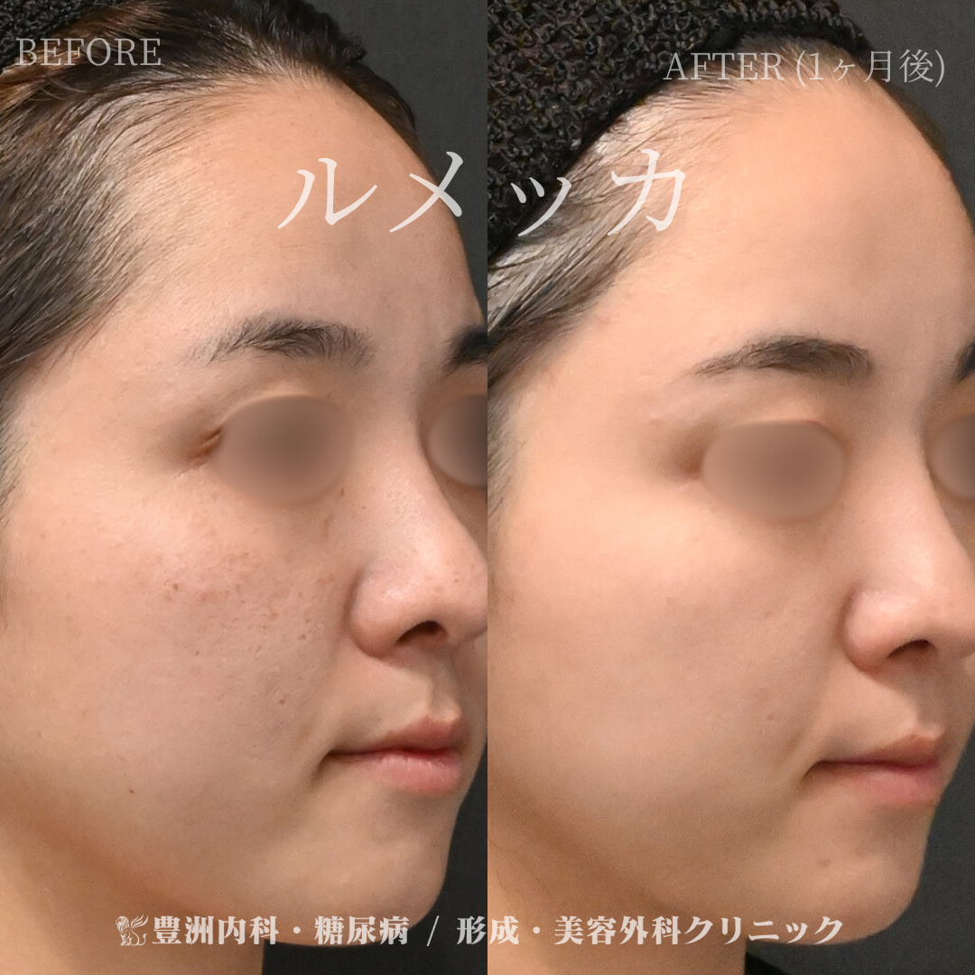 ルメッカはメラニンやヘモグロビンなどの色素に反応するため、従来のIPLと比較して、シミ、そばかす、赤ら顔、ニキビ跡、くすみなどに効果が期待できる施術です。