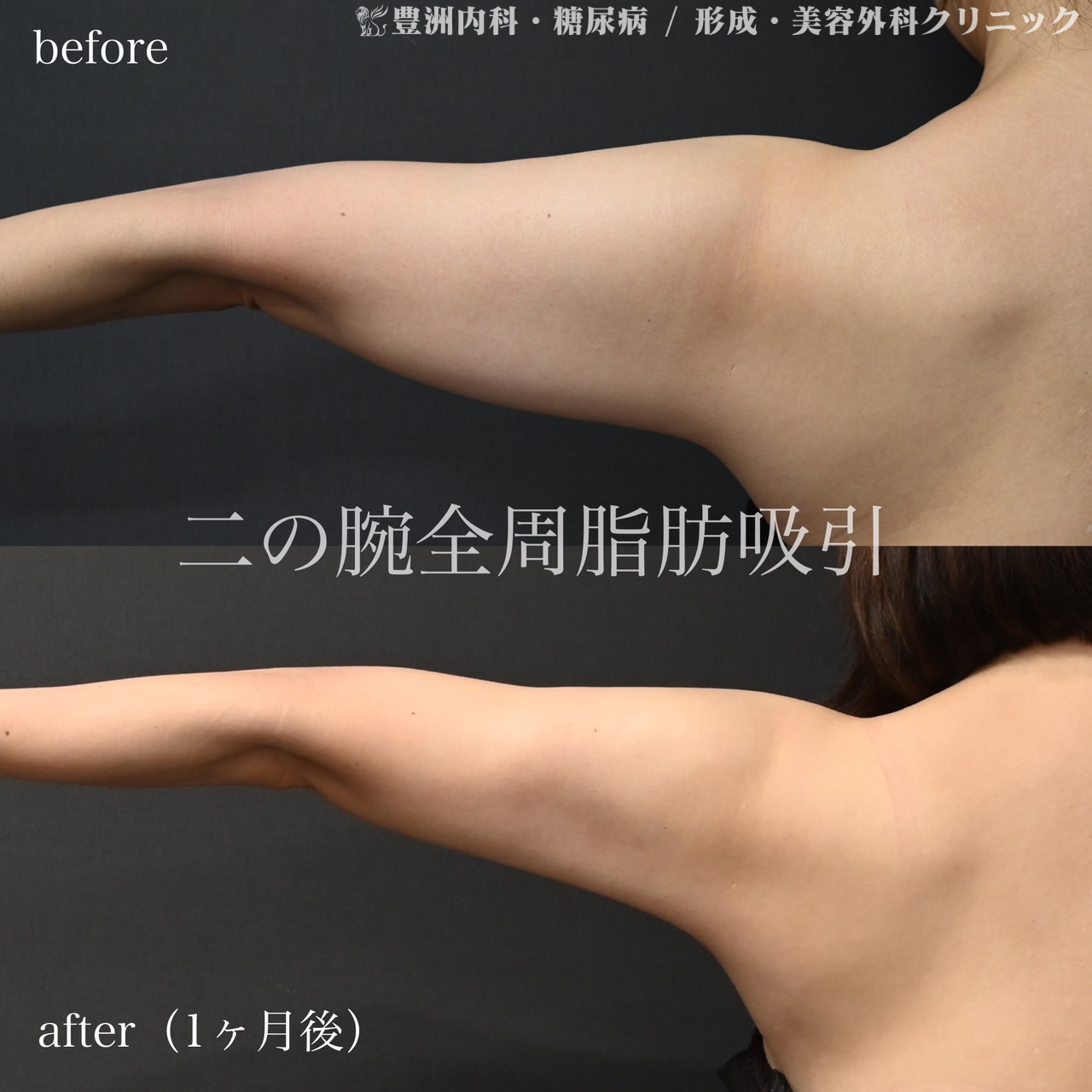 二の腕、肩、肩甲骨上の3箇所、二の腕全周の脂肪吸引を行いました。
