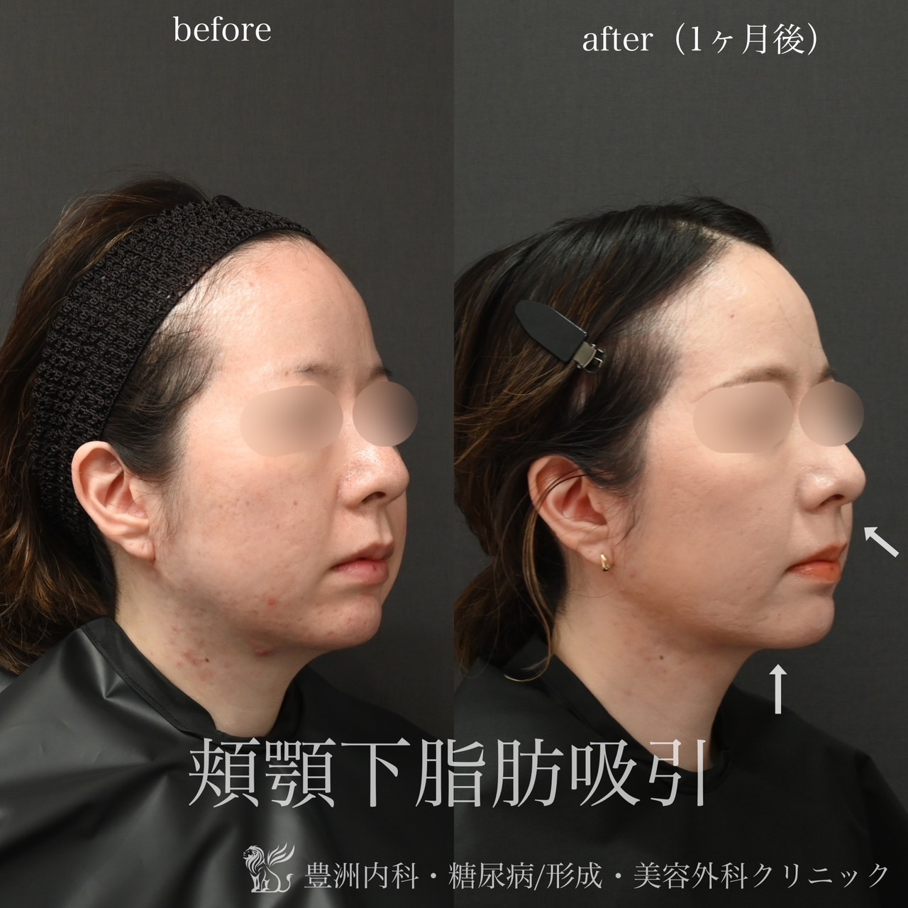 頬はこけないように適度に、顎下は皮一枚になるまでペラペラに吸引しております。