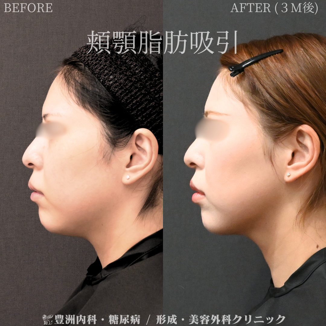 顎の下と耳たぶの下の合計3箇所に約3ミリの傷をつけて、そこからカニューレで余分な脂肪を吸引しております。