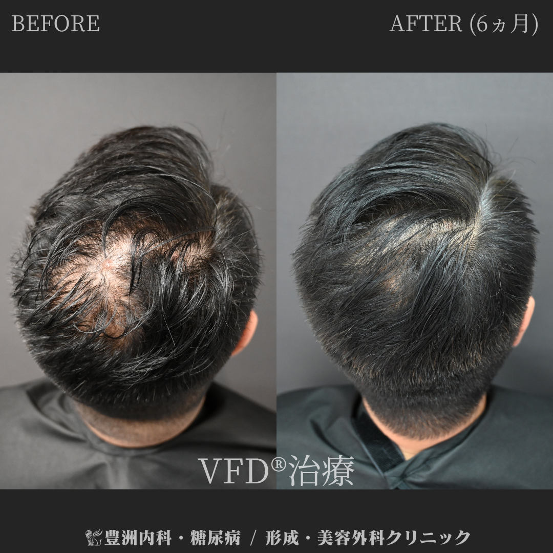 AGAに対してVFD®治療をされた方のBefore、After(6ヶ月後)写真になります。